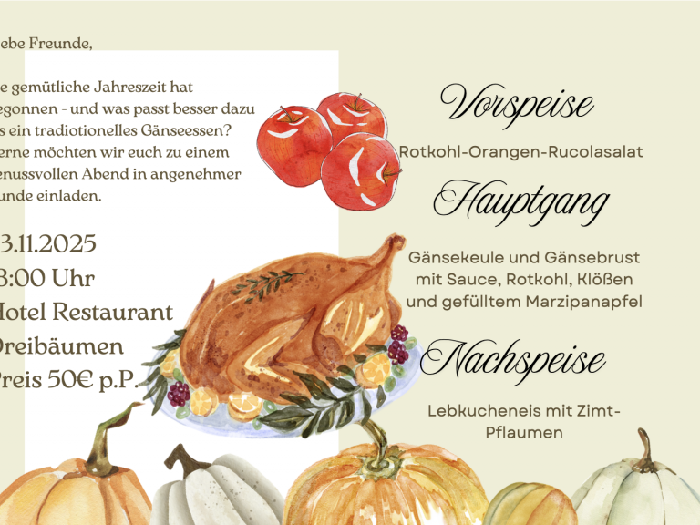 Die gemütliche Jahreszeit steht vor der Tür und was passt besser dazu als ein traditionelles Gänseessen!