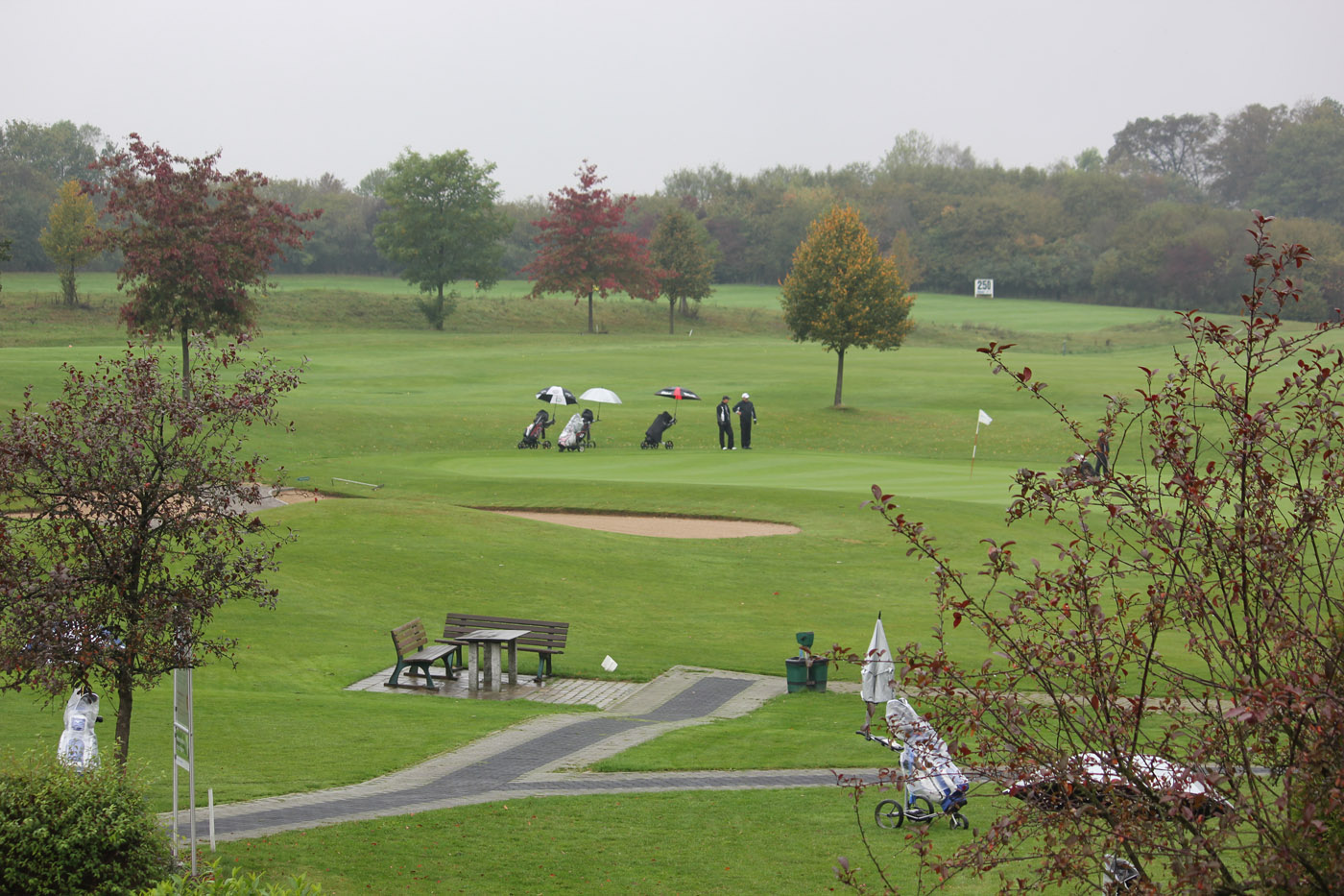 Das Wetter war zunächst wie angekündigt sehr herbstlich; niedrige Temperaturen und leichter Regen. Dies erforderte nicht nur eine entsprechende Ausrüstung in Form von Regenkleidung und Schirmen, es erschwerte auch das Spiel. Der ein oder andere wunderte sich, warum die Bälle nicht mehr so weit flogen bzw. rollten wie noch eine Woche zuvor.