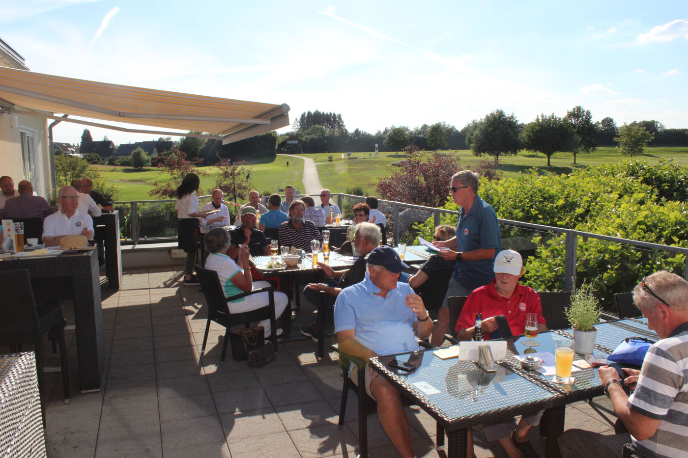Nach der Runde trafen sich alle bei kühlen Getränken auf der Terrasse, um über die ein oder andere vergebene Chance zu philosophieren und der Siegerehrung zu lauschen.