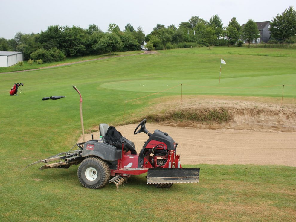 Der Übungsbunker an unserem Pitching-Green ist komplett überarbeitet worden. Die Bunkerkante hat jetzt leicht schottische Ausmaße und ermöglicht ein perfektes Training.