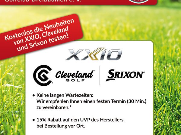 Golf und Günstig veranstaltet wieder Demo/- und Fittingtage in Dreibäumen mit den Marken XXIO, Clevalnd und Srixon am 15. April, sowie mit TaylorMade und Callaway am 17. April. Testen Sie die aktuellen Schläger der führenden Hersteller im Golfbereich. Auf Schlägerbestellungen vor Ort erhalten Sie 15 % Rabatt auf die UVP des Herstellers. Bitte beachten Sie,…