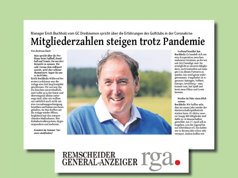 Unser Spielführer und Clubmanager Erich Buchholz wurde in dieser Woche vom Remscheider Generalanzeiger interviewt. Herausgekommen ist ein schönes Gespräch über den Golfsport in Corona-Zeiten, unser Clubleben, unsere Jugendarbeit und und ein Blick auf das kommende Jahr.