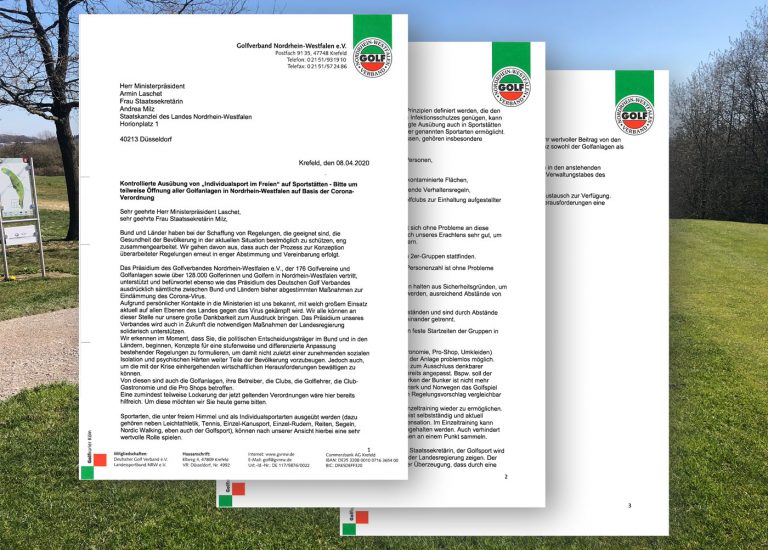 Wie in unserem letzten Beitrag Aktuelle Informationen – Stand 06.04.2020 bereits erwähnt hat der Golfverband ein Schreiben an unsere NRW Landesregierung gesendet.