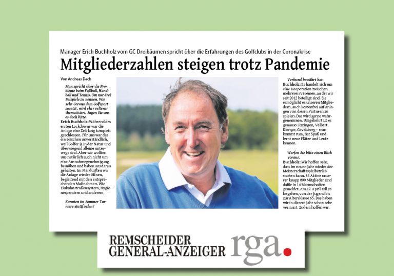 Unser Spielführer und Clubmanager Erich Buchholz wurde in dieser Woche vom Remscheider Generalanzeiger interviewt. Herausgekommen ist ein schönes Gespräch über den Golfsport in Corona-Zeiten, unser Clubleben, unsere Jugendarbeit und und ein Blick auf das kommende Jahr.