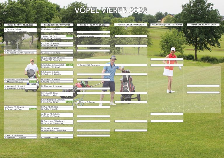 Zwischenzeitlich haben die letzten Paarungen um den Einzug ins Halbfinale gespielt. Hier finden Sie den aktuellen Zwischenstand des Vöpel Vierer 2023. Sie können die Tabelle auch jederzeit im Downloadcenter abrufen.