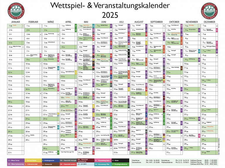 Wir haben den Wettspiel- & Veranstaltungskalender 2025 aktualisiert, ab sofort steht Ihnen auch der Termin-Download für Outlook, Google-Kalender und Apple-Calender zur Verfügung.