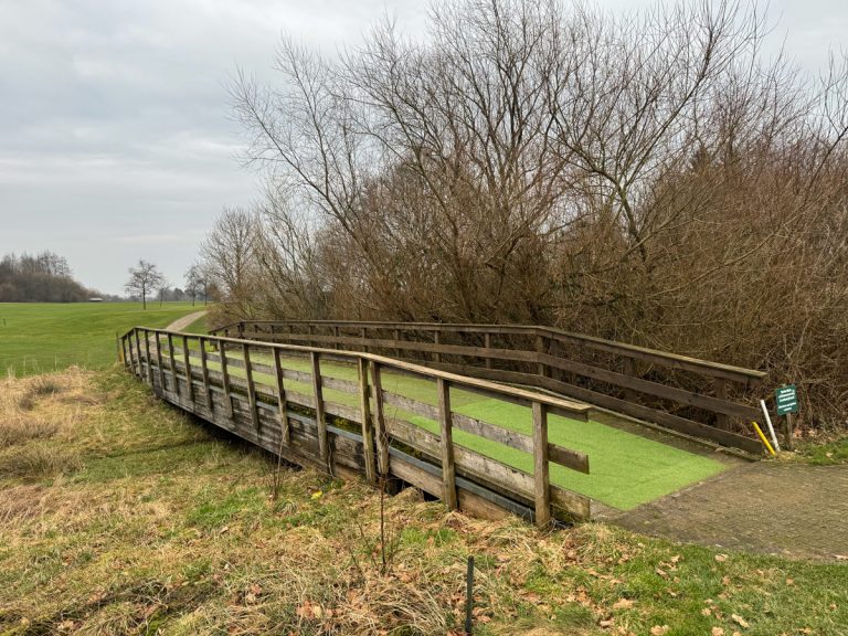 Die Reparaturarbeiten an der Brücke zum Abschlag der Bahn 10 wurden am 11.03.2025 beendet! Damit ist diese ab sofort wieder uneingeschränkt nutzbar. Gleichzeitig hat sich die temporäre „Umleitungsregelung“ damit natürlich erledigt!