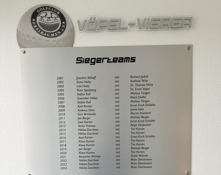 Der Vöpel Vierer 2022 ist beendet – die Sieger stehen fest. Niklas Durchner und Peter Dieckmann haben das Turnier mit 4 und 2 gegen Colin Fischer und Tim Ulatowski gewonnen! Herzlichen Glückwunsch!