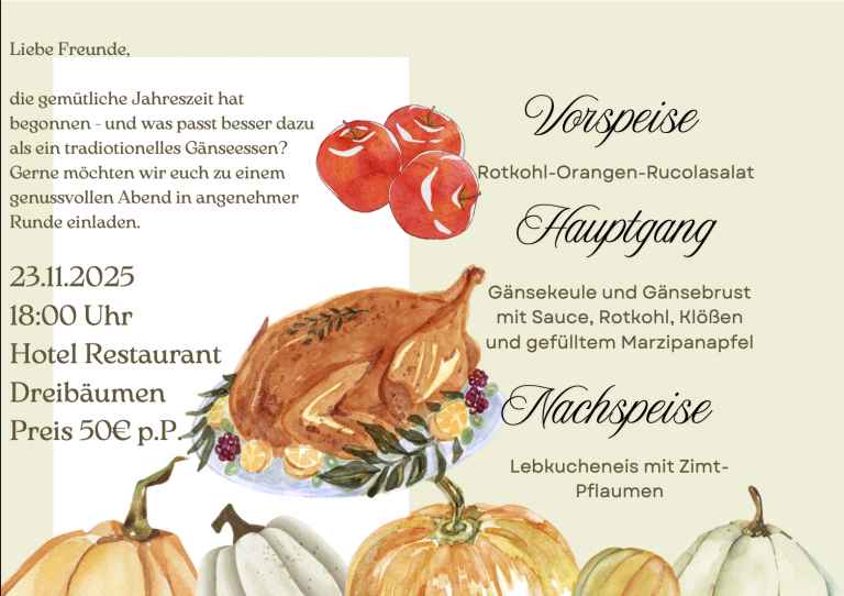 Die gemütliche Jahreszeit steht vor der Tür und was passt besser dazu als ein traditionelles Gänseessen!