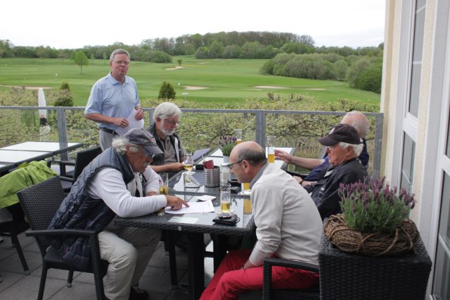 Am Donnerstag fand das erste vorgabenwirksame Turnier unserer Senioren in dieser Saison statt. Bei trockenem Wetter machten sich – völlig unverständlich – leider nur 9 Teilnehmer auf die Runde, was aber der guten Stimmung keinen Abbruch tat.