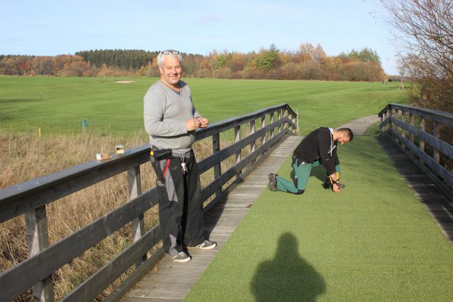 Das Hausmeisterteam um Ingo Grabowski und Giorgio Esposito hat am vergangenen Mittwoch, den 14.11.18 die Brücke über das Biotop der Bahn 18 im Auftrag der Dohrmann Golfplatz AG mit einem wetterfesten Spezialbelag versehen.