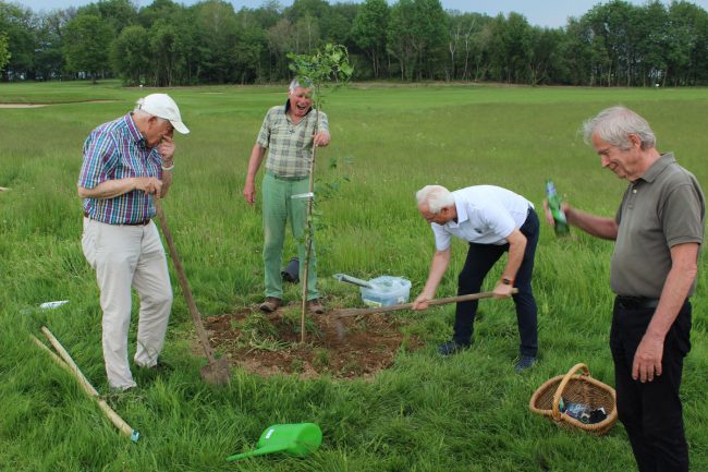 Auf Initiative unseres Mitglieds Dr. Wolfgang Schulze wurden am 30. Oktober 2016 – also vor beinahe fünf Jahren – insgesamt drei junge Elsbeeren am Fairwayrand der Bahn 1 gepflanzt. Zwei der Bäume sind gut angegangen; der dritte hat es leider nicht geschafft und musste ersetzt werden.