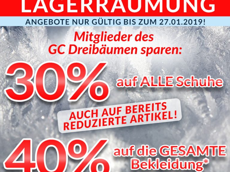 Unser Netzwerkpartner und Pro-Shop-Betreiber Golf und Günstig senkt zum Saisonende radikal die Preise. Schon eine Woche vor Beginn des großen online-Ausverkaufs haben die Mitglieder des Golfclubs Dreibäumen die Möglichkeit, von dieser Rabattaktion zu profitieren.