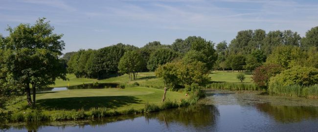 Schon bei der Proberunde wurde klar: das wird schwer. Der Platz bei Neuss ist wunderschön aber sehr trickreich. Zahlreiche Wasserhindernisse und teils tiefe Topfbunker – da musste taktisches Spielen her.