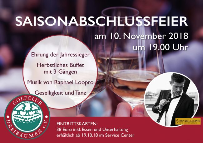 Wie schon angekündigt möchten wir gerne am Samstag, den 10.11.18 mit möglichst vielen Mitgliedern den Abschluss der Saison 2018 feiern
